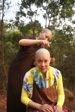Trước ống kính, Vương Dự Lâm tĩnh tâm để sư thầy cạo đầu. Theo các tin tức, Dự Lâm đã quyết định đi tu để hiểu thêm về nhân sinh quan của nhà Phật.